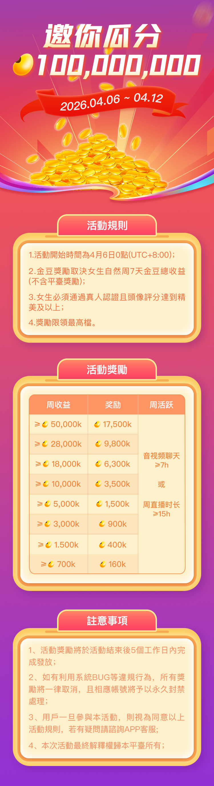 瓜分金豆 0406-0412 中